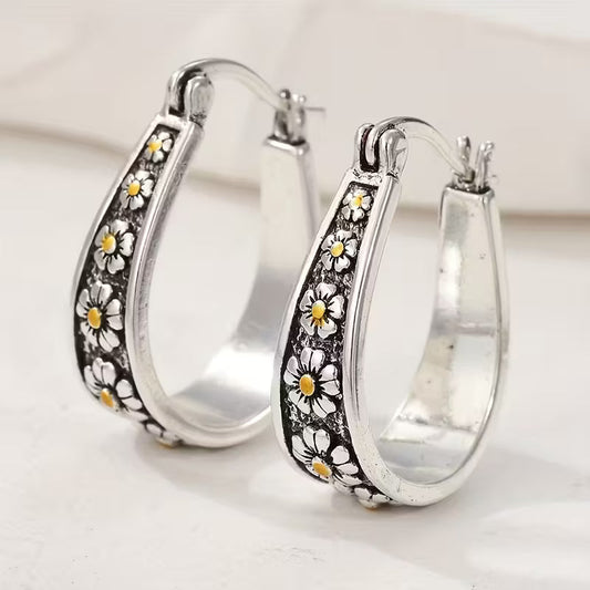 Vintage Meadow Daisy Elegance Hoop Earrings
