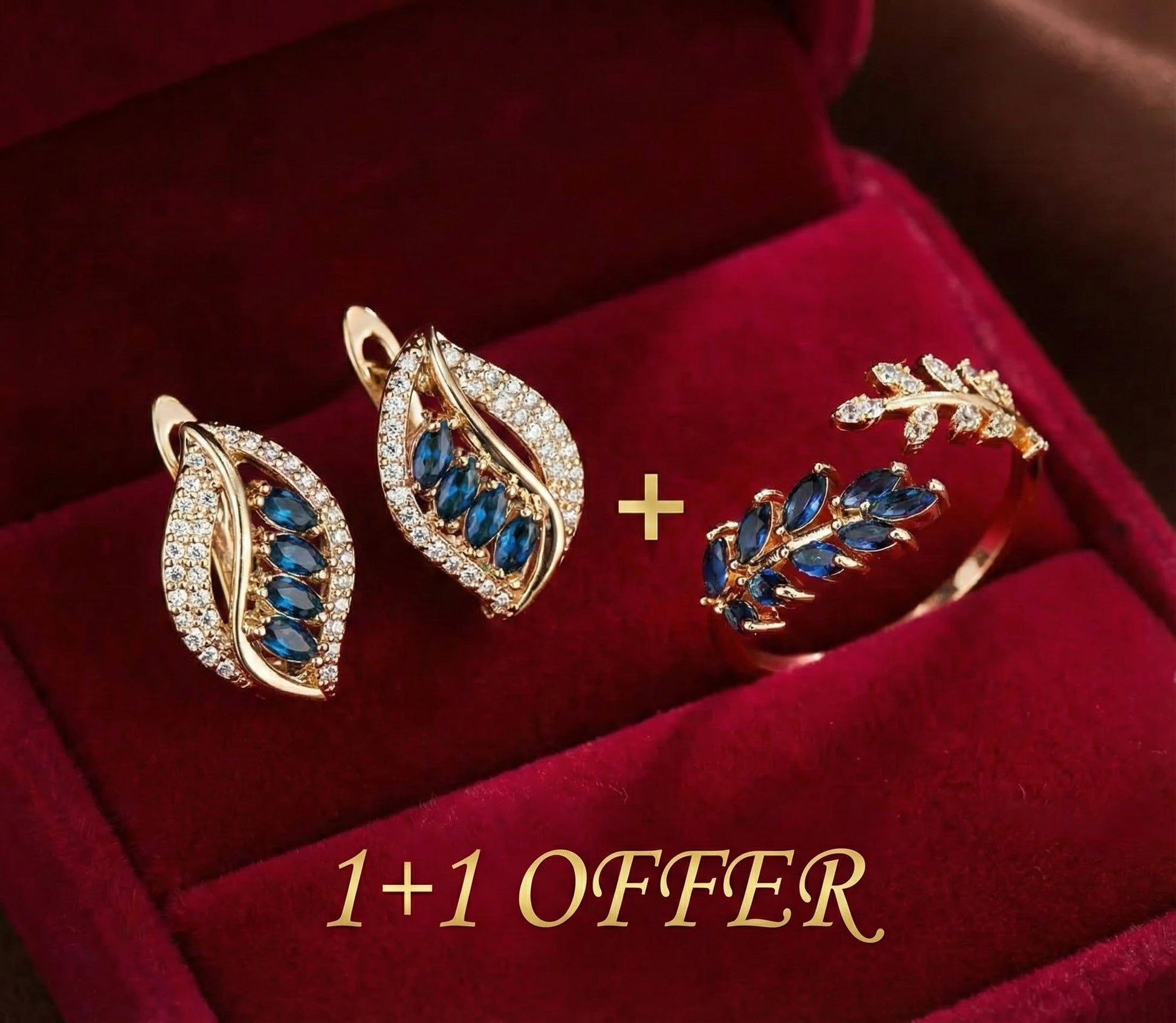 1+1 Offer: Isola Caelurelle Gold Earrings + Vivara Saphielle Gold Ring