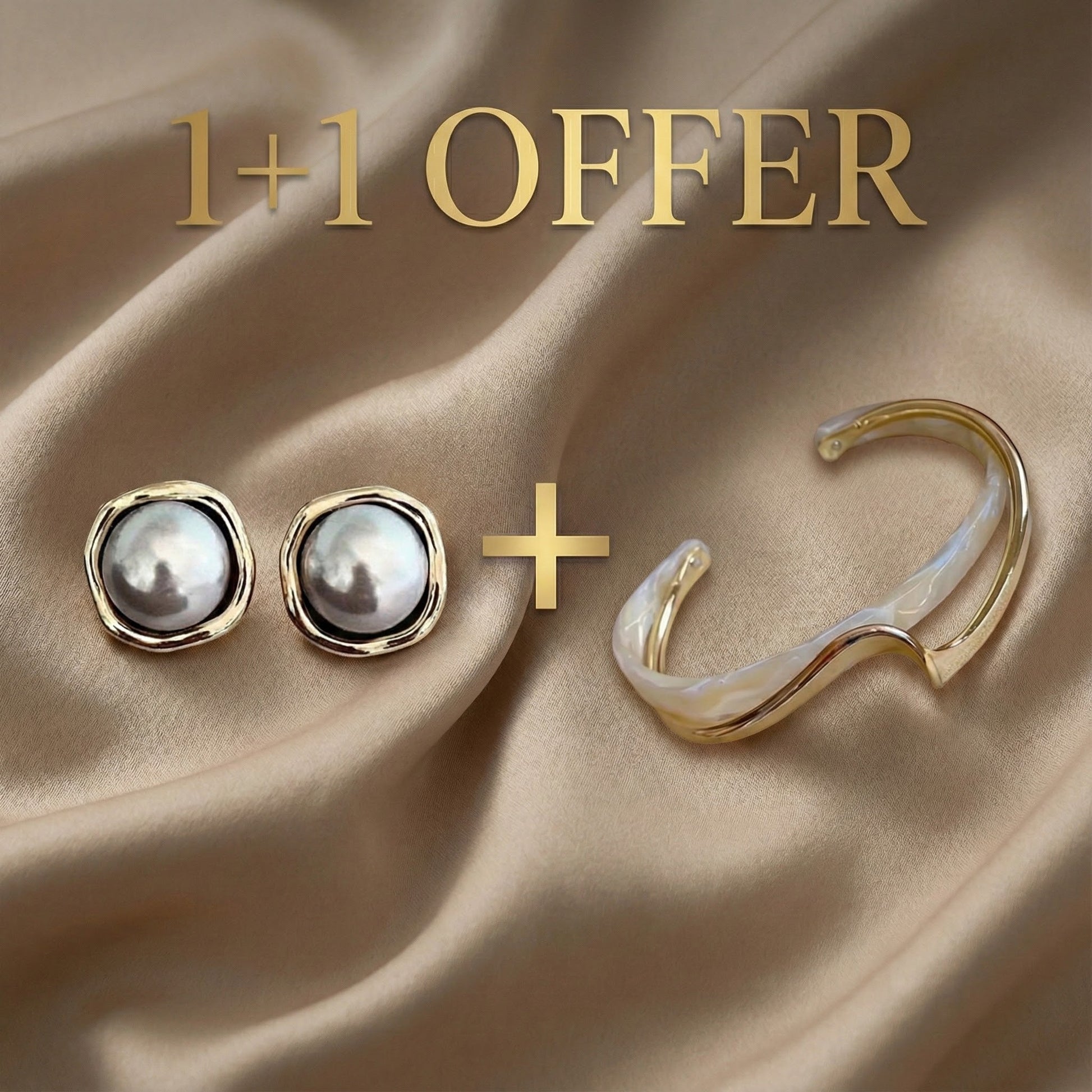1+1 Offer: White opal elegant golden bracelet + Elegant black pearl earrings